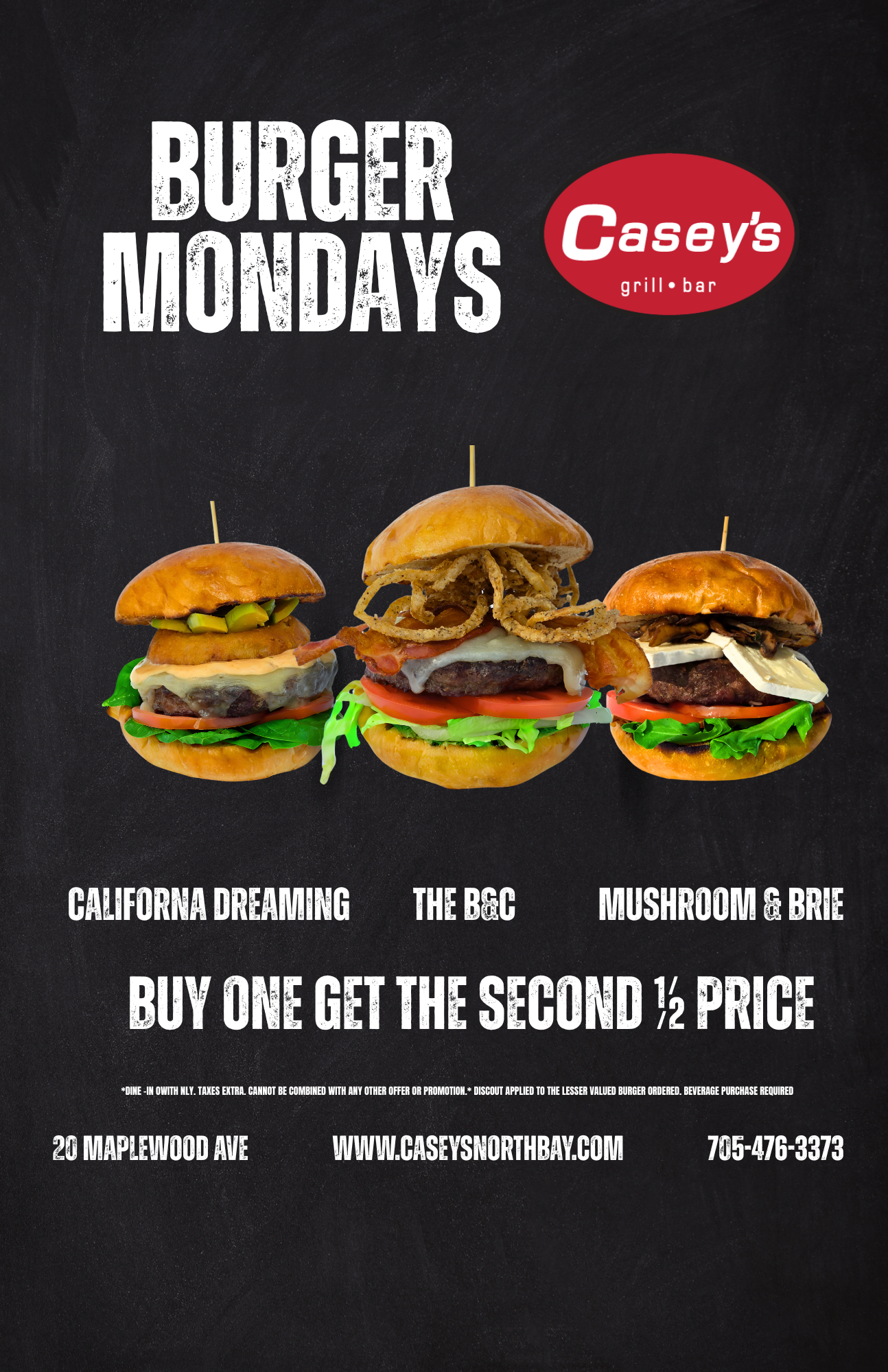 When you come in to Casey’s on the day of your Birthday with valid photo ID, Casey’s will treat you to one entrée up to $15 as long as you purchase a beverage and bring a guest who spends the same or more.